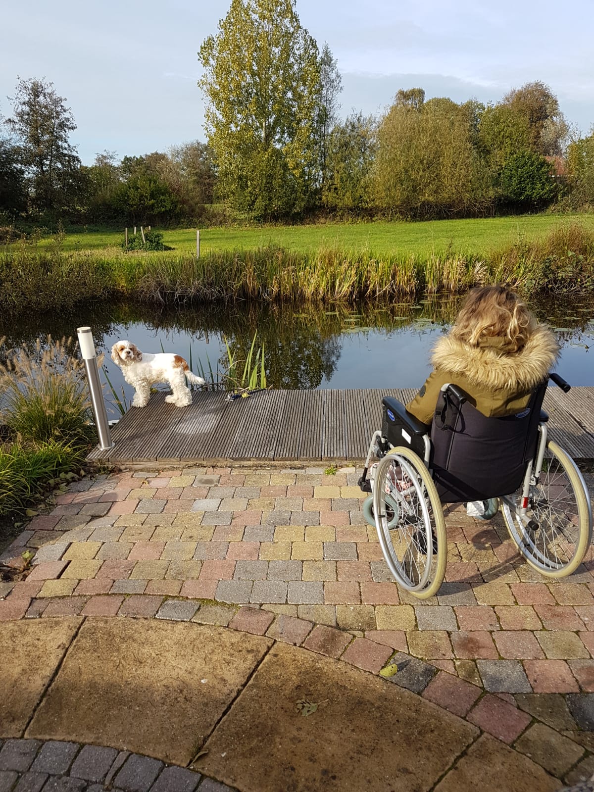 We hebben haar met de hulp van thuiszorg een aantal maanden echt intensief moeten verzorgen. We hebben een ziekenhuisbed voor haar moeten bestellen, omdat ze niet zelfstandig overeind kon komen. Ook kwam er een po-stoel, waardoor het hier echt een ziekenhuis aan huis werd. Zo’n vijf stappen lopen van haar bed naar de wc lukte niet en moest met de rolstoel. Zelfstandig opstaan uit de rolstoel of bed ging eveneens niet, je moest haar tillen, en af en toe raakte ze helemaal weg en kwam ze even later weer bij. Ze voelde zich als ‘een pop die onderhouden moest blijven worden’, zo zei ze.