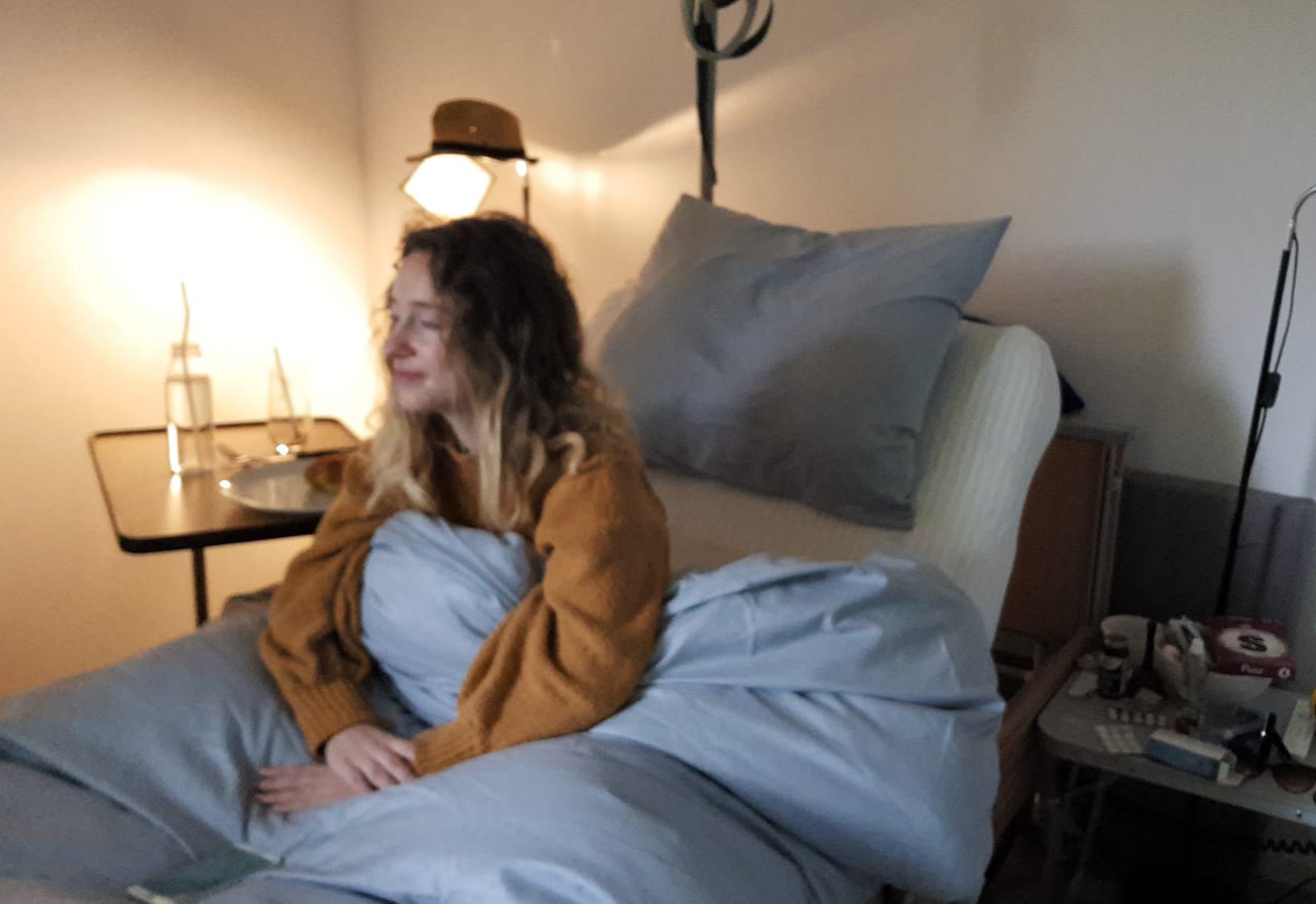 Zimra heeft in totaal negen maanden in bed gelegen, waarvan ze zes maanden helemaal niet heeft gesproken, geen woord. Ze had hier geen energie meer voor. Als ze één vinger opstak betekende dat ‘ja’ en twee vingers betekende ‘nee’. Als ze haar hand omhoog deed, kwam het niet meer binnen wat we tegen haar zeiden en lieten we haar helemaal met rust.